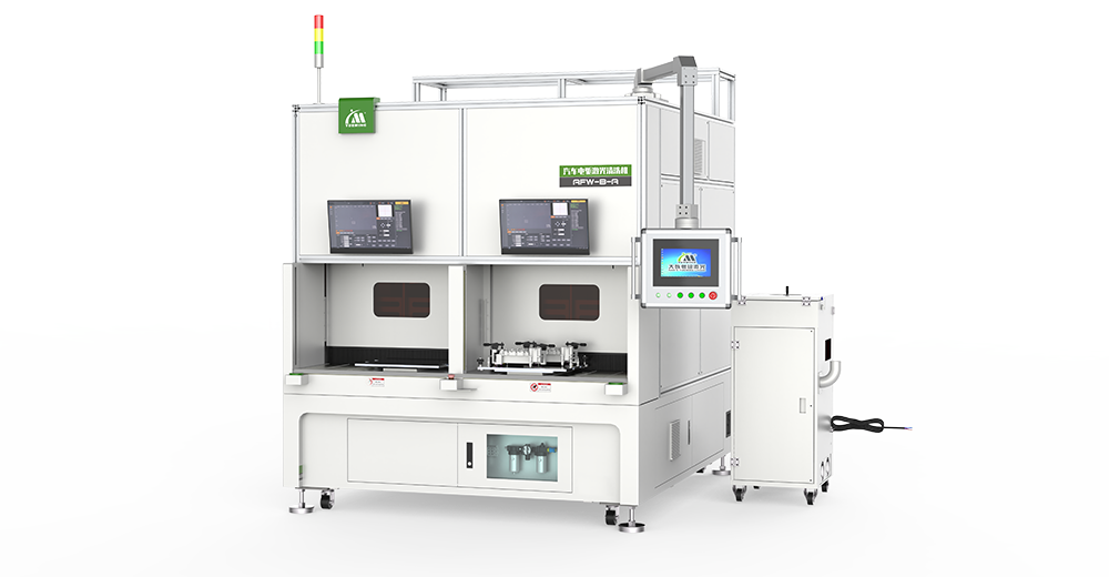 大族粵銘激光汽車電驅激光清洗機系列,雙工位交互式上下料、CCD視覺系統定位、上下料不停機、分區式全防護設計,主要用于母線電容、濾波器、三相銅排等激光剝漆清洗。