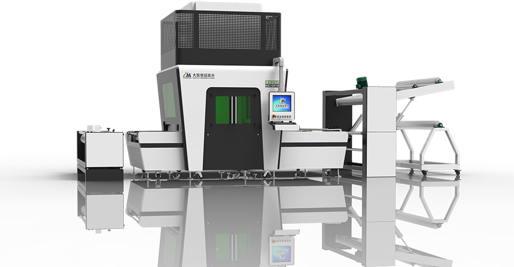 大族粵銘激光MC系列大幅面飛行激光印花機(jī),控制系統(tǒng)通過對(duì)激光器出光的控制、掃描頭運(yùn)動(dòng)圖形的軌跡及輸送線運(yùn)動(dòng)速度的運(yùn)算,實(shí)現(xiàn)1800mm*無限長(zhǎng)的大幅面飛行追蹤激光印花;模塊化設(shè)計(jì)的自動(dòng)化收放卷系統(tǒng),整個(gè)加工過程只需操作人員看管,實(shí)現(xiàn)一人多機(jī)的工業(yè)4.0思想;經(jīng)典應(yīng)用-牛仔布印花。