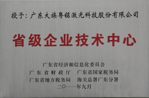 廣東省經(jīng)濟(jì)和信息化委員會(huì)、省財(cái)政廳、省國(guó)稅局、省地稅局、海關(guān)總署廣東分署根據(jù)貫徹提高自主創(chuàng)新能力,建設(shè)創(chuàng)新型國(guó)家的戰(zhàn)略部署,制訂省級(jí)企業(yè)技術(shù)中心訂定評(píng)審辦法。省經(jīng)信委牽頭省五部門(mén)聯(lián)合評(píng)審認(rèn)定:廣東大族粵銘激光科技股份有限公司為“省級(jí)企業(yè)技術(shù)中心”。