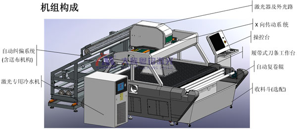 5.主機(jī)上配備有自動(dòng)復(fù)卷機(jī)構(gòu)及帶有輔助上料功能的自動(dòng)糾偏機(jī),共同組成了一條功能較為完備的,可對(duì)成卷柔性材料進(jìn)行大幅面的雕花,打標(biāo),切割,打孔加工的全自動(dòng)生產(chǎn)線;