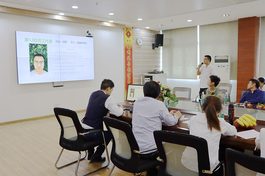 在員工心聲交流座談會現場的氣氛輕松活躍,員工代表們逐一發言、各抒己見,就日常工作及生活中遇到的問題和建議獻策建言,就部門間的溝通協作問題,公司的福利待遇問題,也提出了自己的想法和建議,希望住宿環境越來越舒適、飯堂食譜越來越多樣化、文體活動越來越豐富、業務培訓越來越專業...語言簡單而樸實,表達出了員工代表們對于公司各項改善提升的期許。