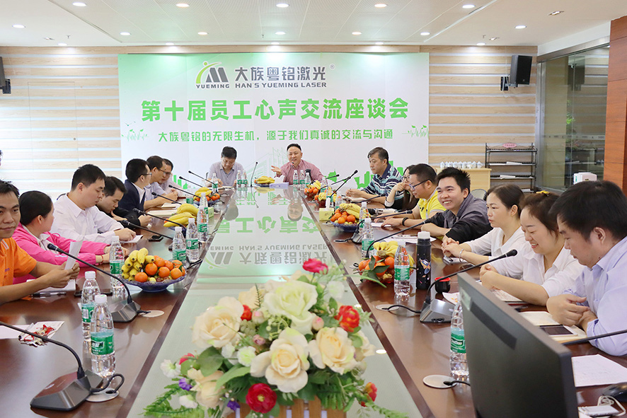 每年的員工心聲交流座談會是粵銘激光集團“家文化”建設的重要一環,通過召開交流會傾聽員工心聲,了解員工訴求,拉近了員工與企業管理團隊之間的距離,增強了員工的歸屬感、責任感,也讓大家心往一處想,勁往一處使,為粵銘激光集團的持續健康發展努力奮斗。