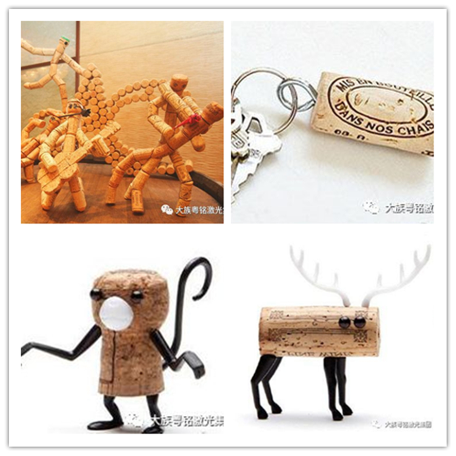 通過CO2激光打標機標刻后的木塞還能夠用于制作工藝品,做成木塞模型、鑰匙配件,還能夠制成各種小巧的惟妙惟肖的動物裝飾品。