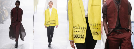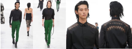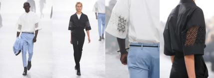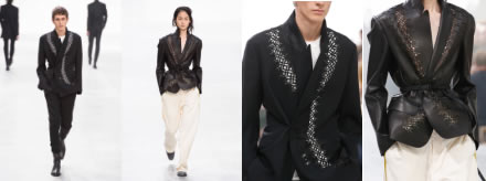激光鏤空工藝貫穿了整場秀,西裝外套、襯衫、皮帶、裙子、馬甲等地方都能看到激光鏤空印花的設(shè)計,不僅呈現(xiàn)出慵懶知性的主題,而且也讓我們看到服裝面料激光鏤空機能夠創(chuàng)造出更多的可能性。